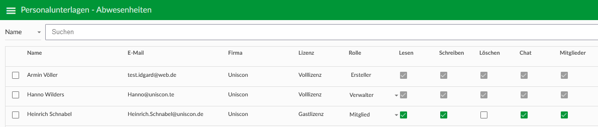 Mitgliederliste Wird einem Mitglied das Recht "Mitglied" in der Box gegeben, kann dieses Mitglied auf die Liste aller vorhandenen Mitglieder zugreifen. Er kann folgende Daten anderer Mitglieder in der Liste sehen: Name E-Mail-Adresse Firma Lizenz ...