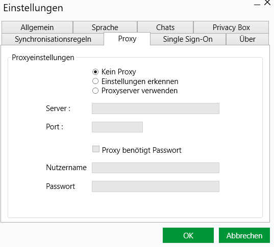 idgard® PW: Angaben zu Ihrem Proxy-Server